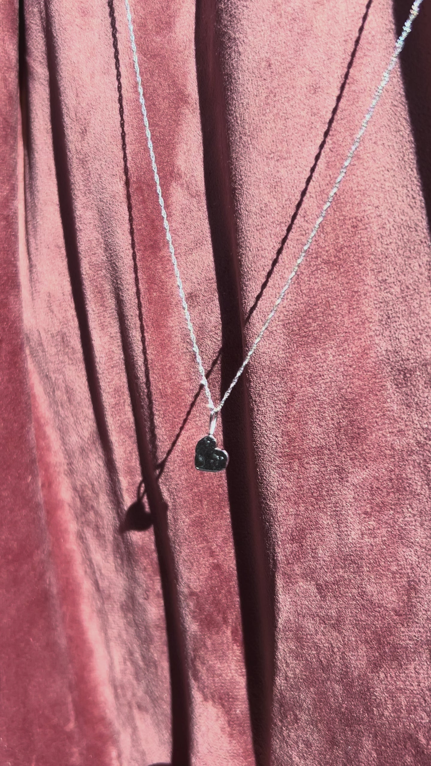 A tiny heart, hand carved and textured from recycled sterling silver.